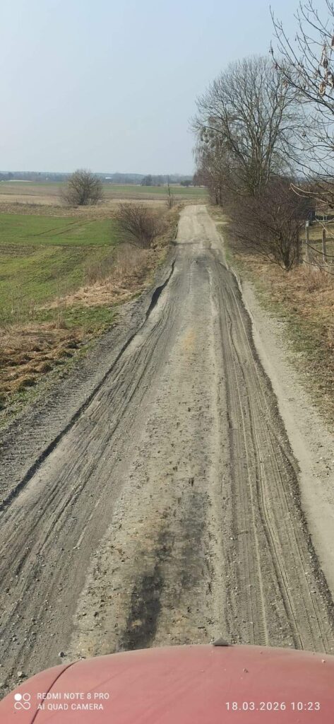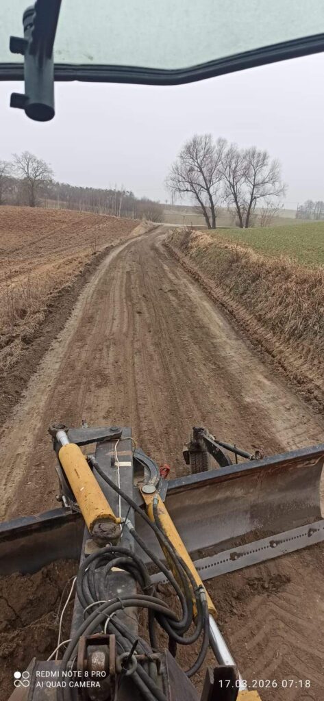 W dniu 17.03.2026 r. profilowano drogi na ul. Kolonia Lewa i ul. Kolonia Prawa w Rajgrodzie.