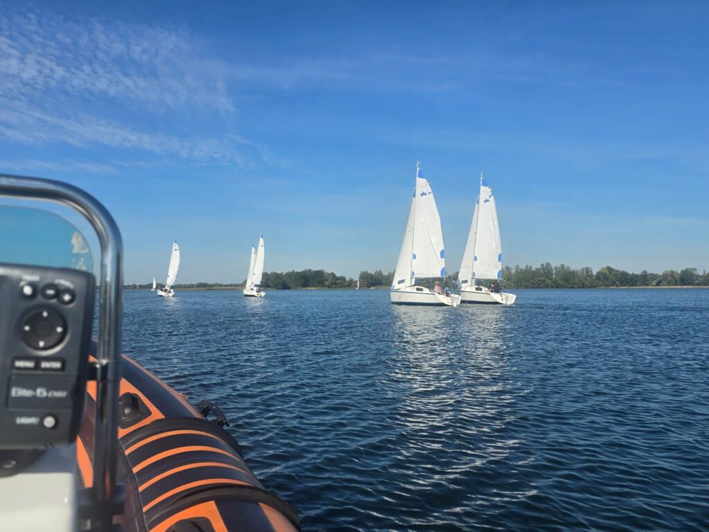 W sobotę, 20 września 2025 roku, na naszym malowniczym Jeziorze Rajgrodzkim odbyły się I Regaty Służb Mundurowych, które zgromadziły pasjonatów żeglarstwa związanych ze służbami mundurowymi. W wydarzeniu wzięło udział 9 załóg, reprezentujących środowiska strażackie oraz wojskowe.